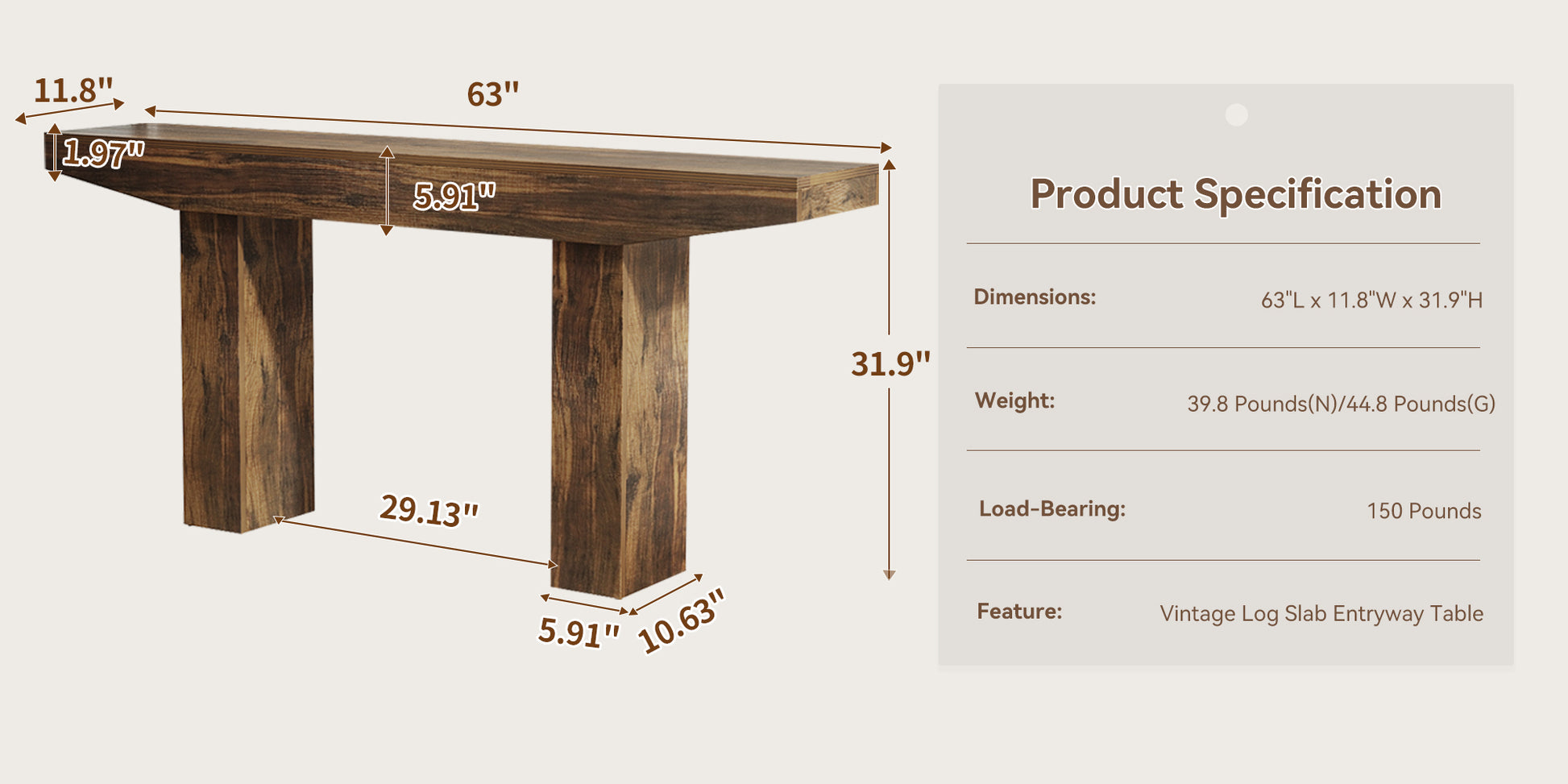- Spacious 63-Inch Design: Extra-long rectangular tabletop provides ample space for displaying decor or storing essentials in entryways, living rooms, or hallways