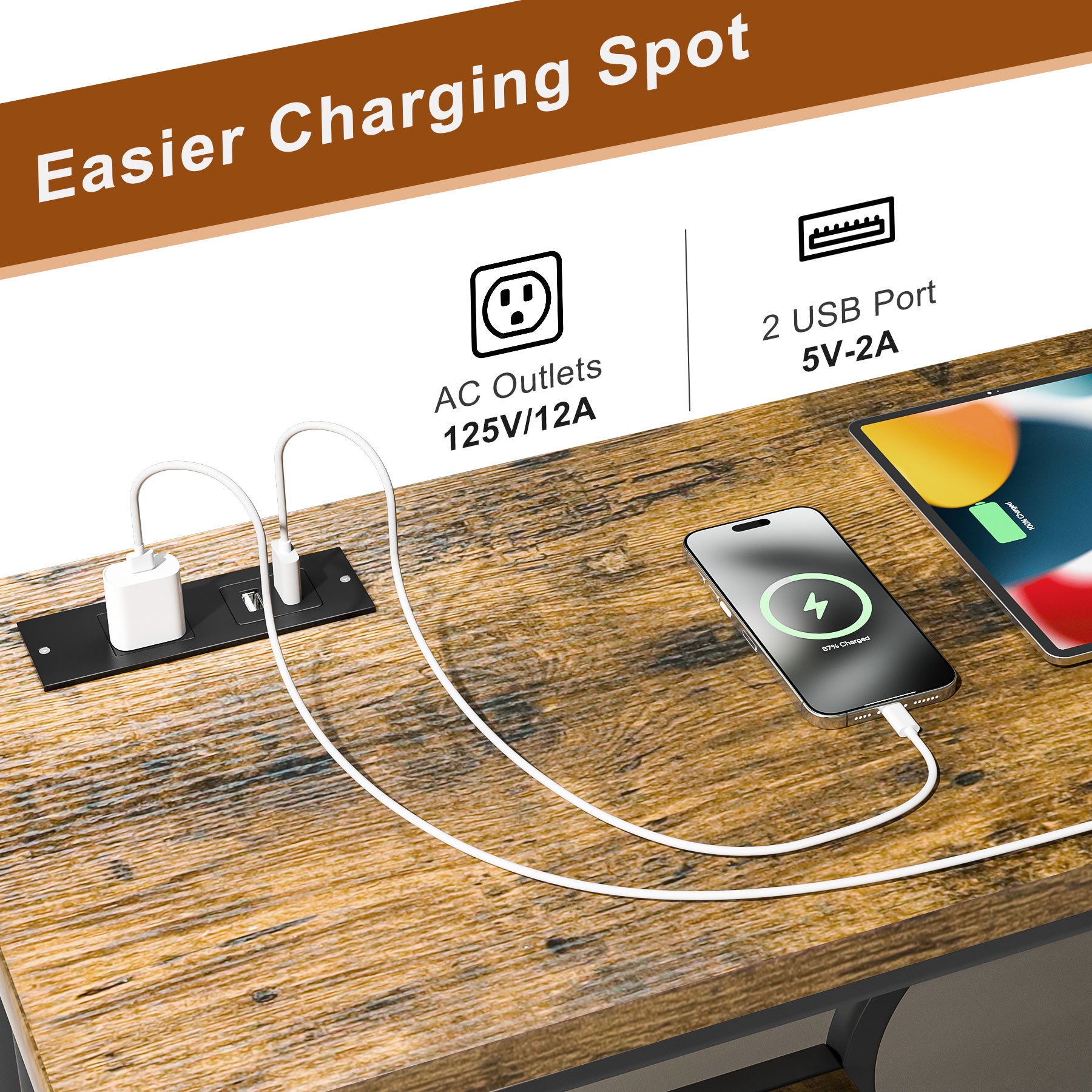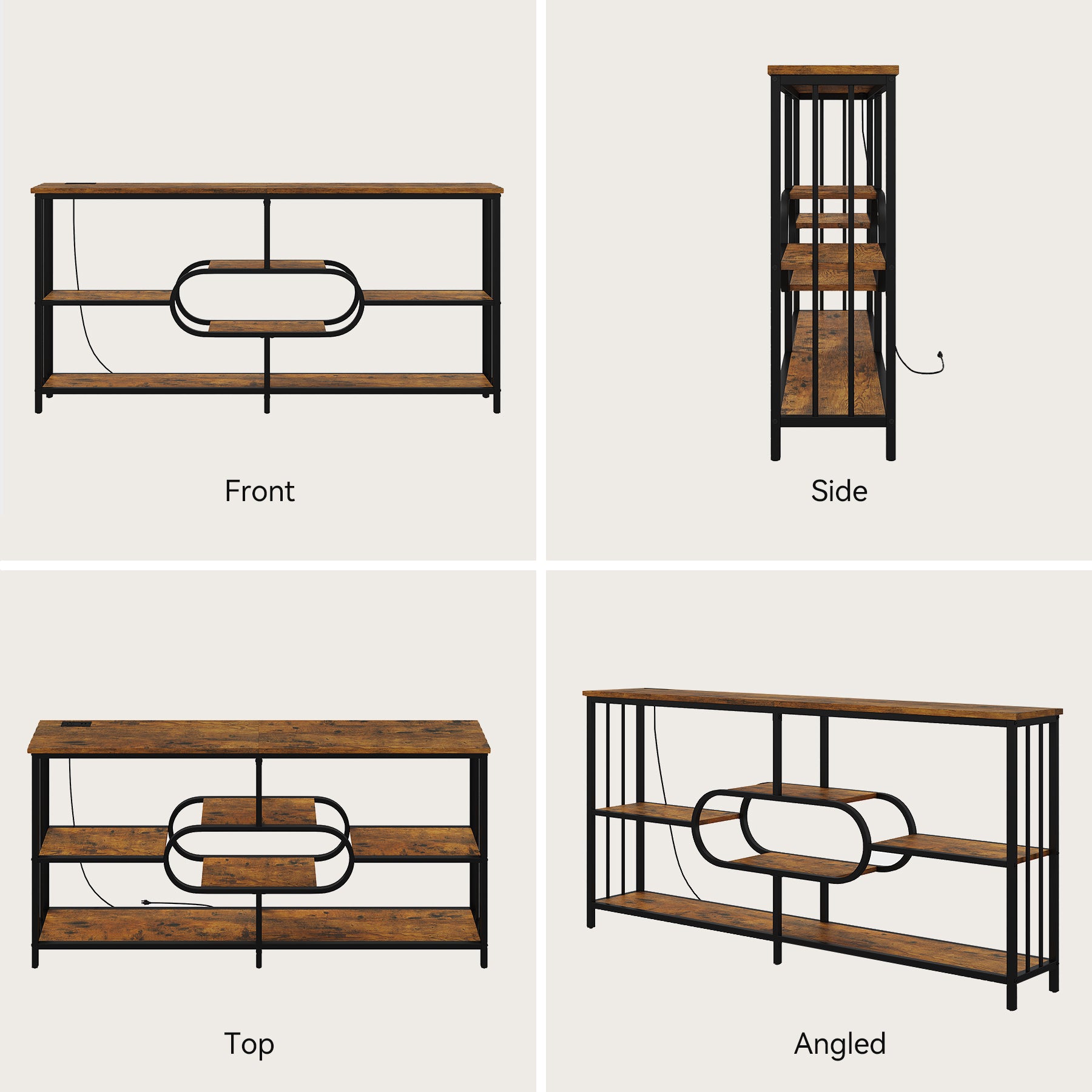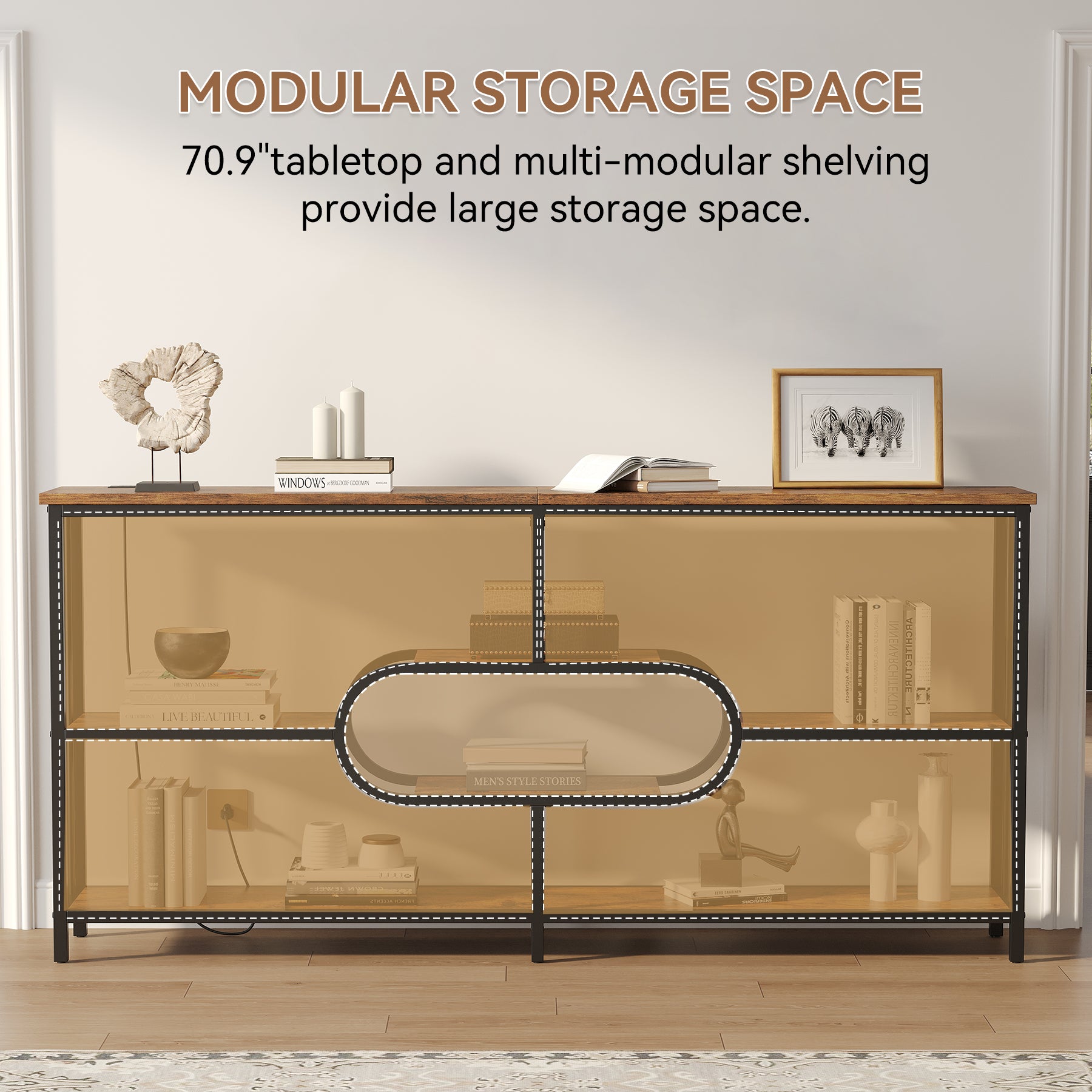 70.9-Inch Industrial Console Table with 3-Tier Shelves and Power Outlet for Living Room Entryway, Long Sofa Table with Metal Frame and Storage Shelf for Hallway Behind Couch, Rustic Brown