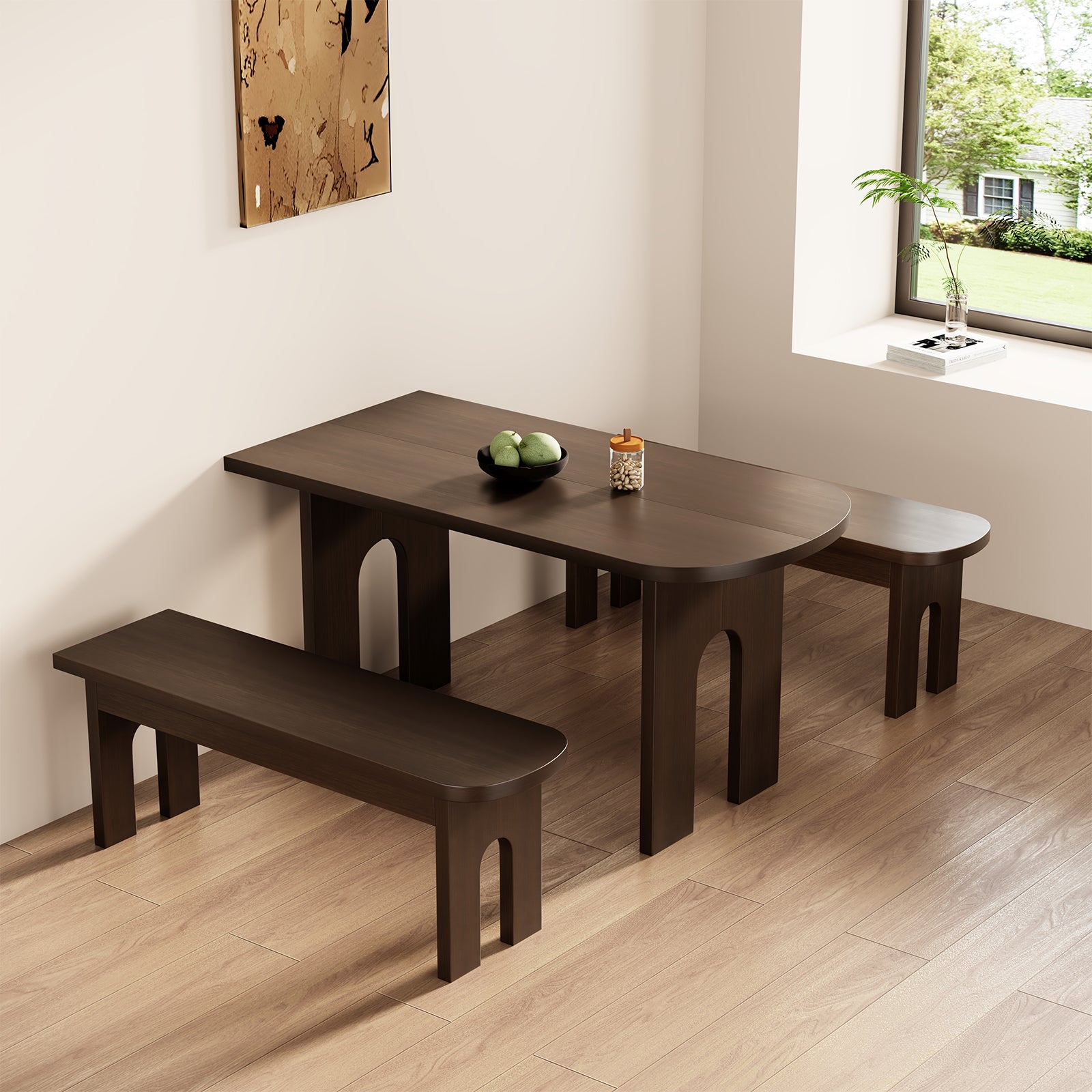 - Space-Saving Design: Compact yet functional, the set fits perfectly in apartments, small homes, or breakfast nooks while maximizing seating with 2 Piece Benches