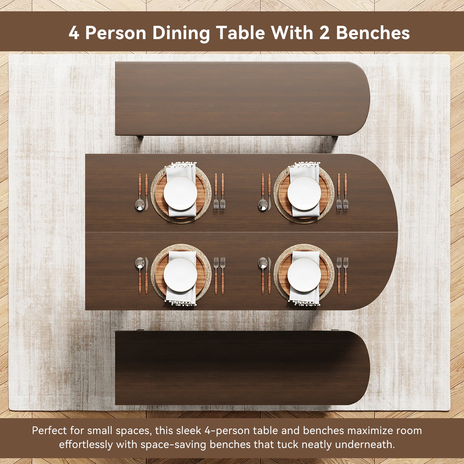 - Perfect 4-Person Dining Table : This 55-inch wooden table with 2 included benches comfortably seats four, ideal for family meals or small gatherings in kitchens and dining rooms